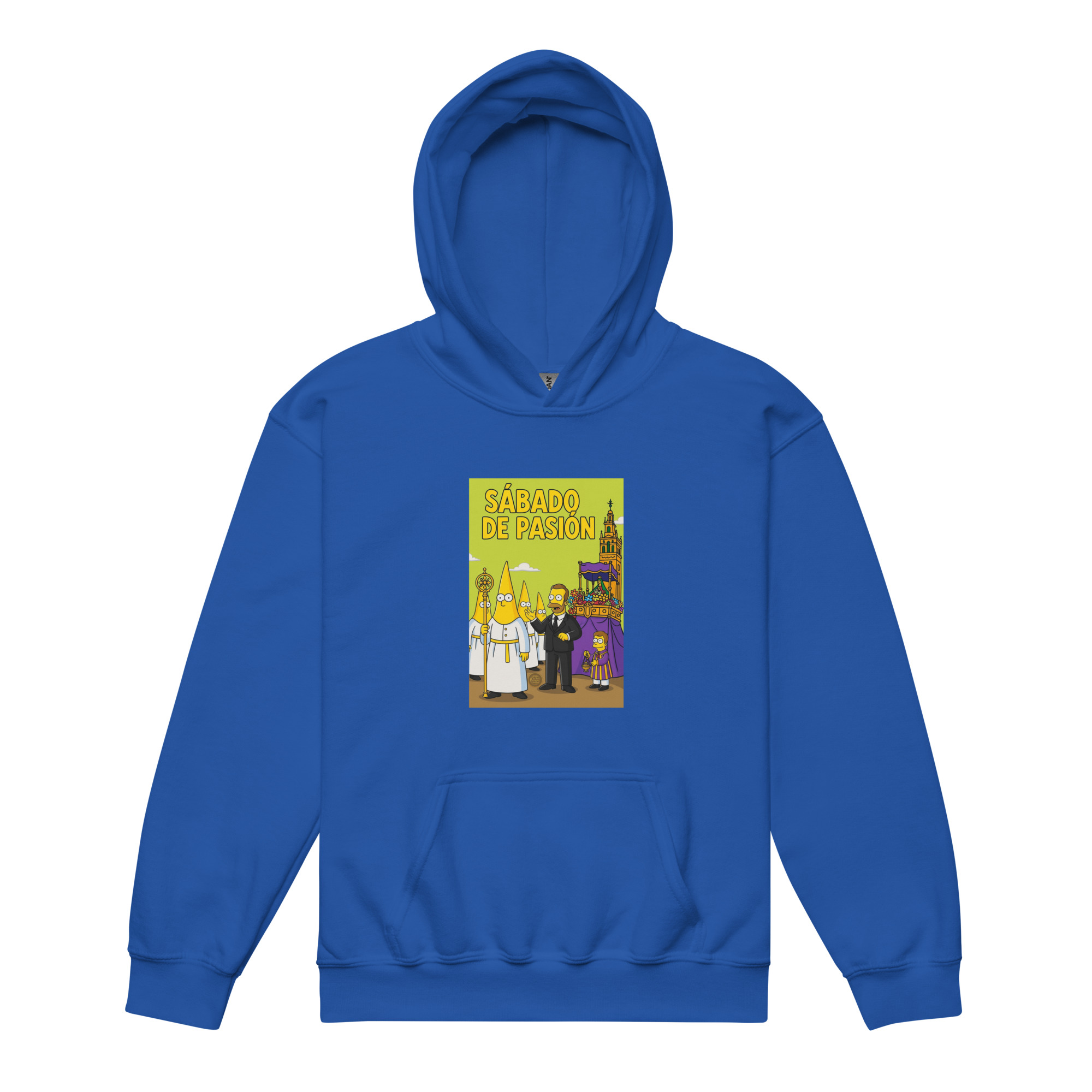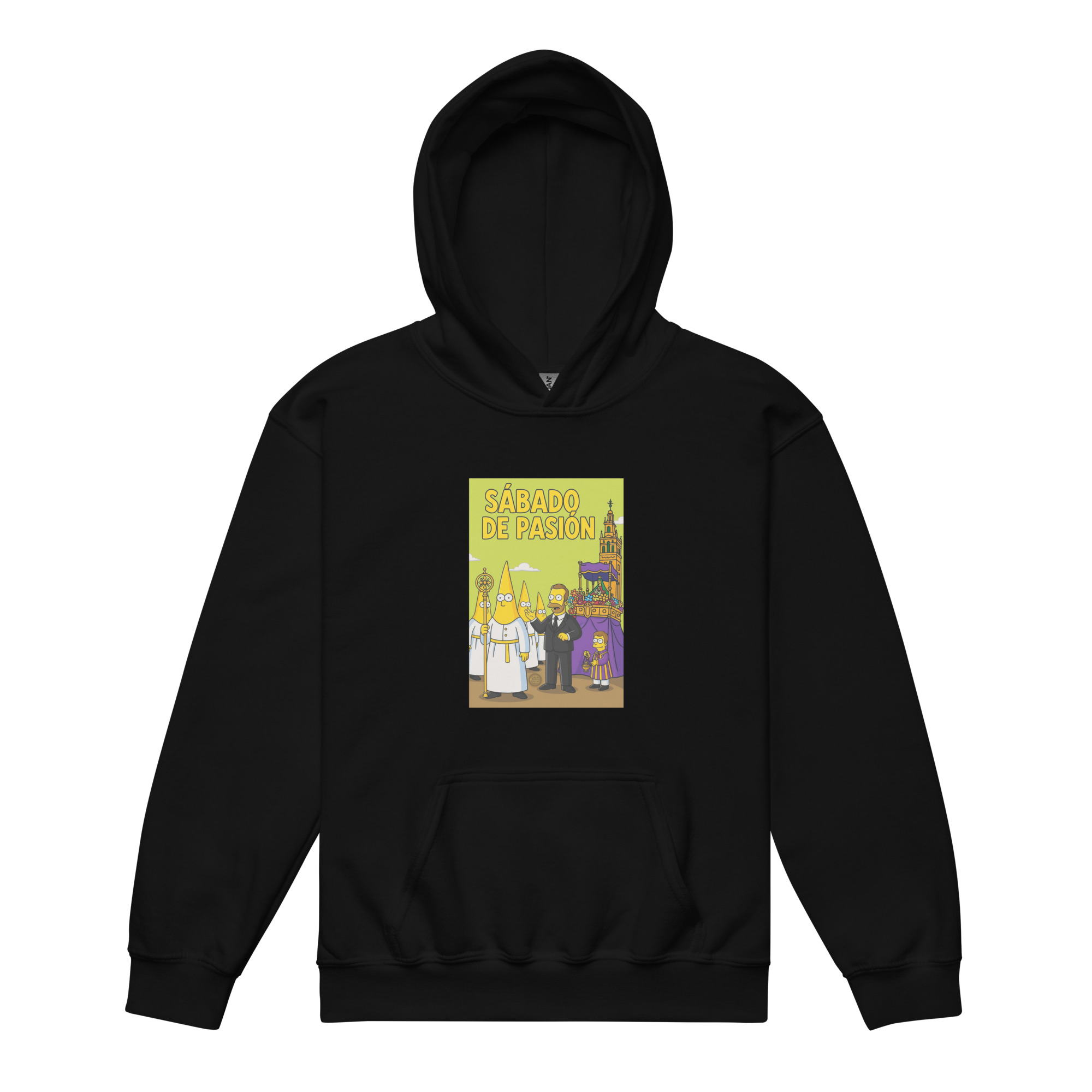 Y qué mejor forma de vivirlo que con nuestra sudadera unisex diseñada para pequeños cofrades, con un dibujo estilo animado, colores planos y ese toque de ternura que enamora.