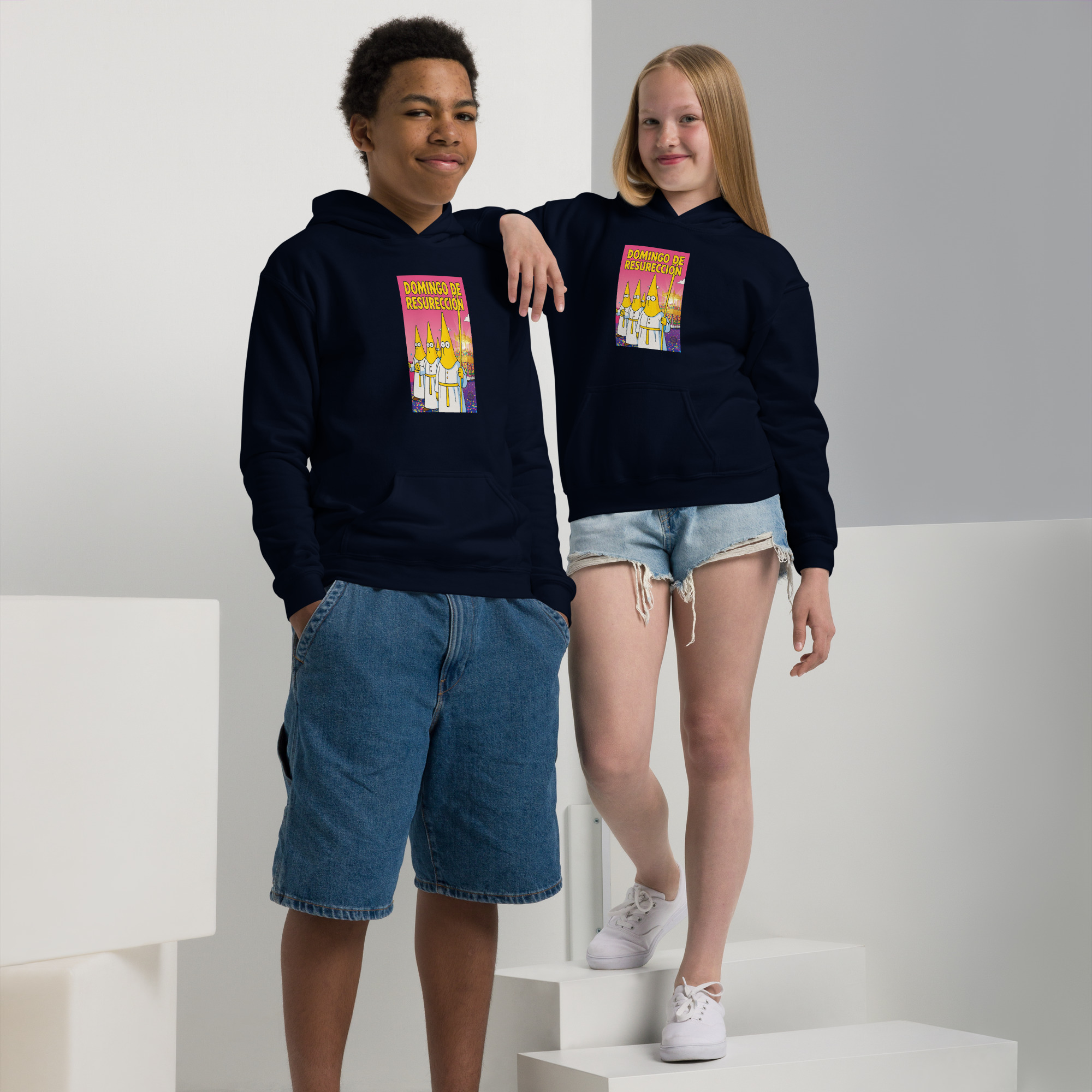 Con un diseño estilo dibujo animado, colores vivos y un toque divertido, esta prenda refleja la parte más bonita de la Semana Santa: la ilusión, la vida y el comienzo de algo nuevo. Ideal para estrenar ese día especial, seguir usando durante el año o guardar como recuerdo de un momento único.
