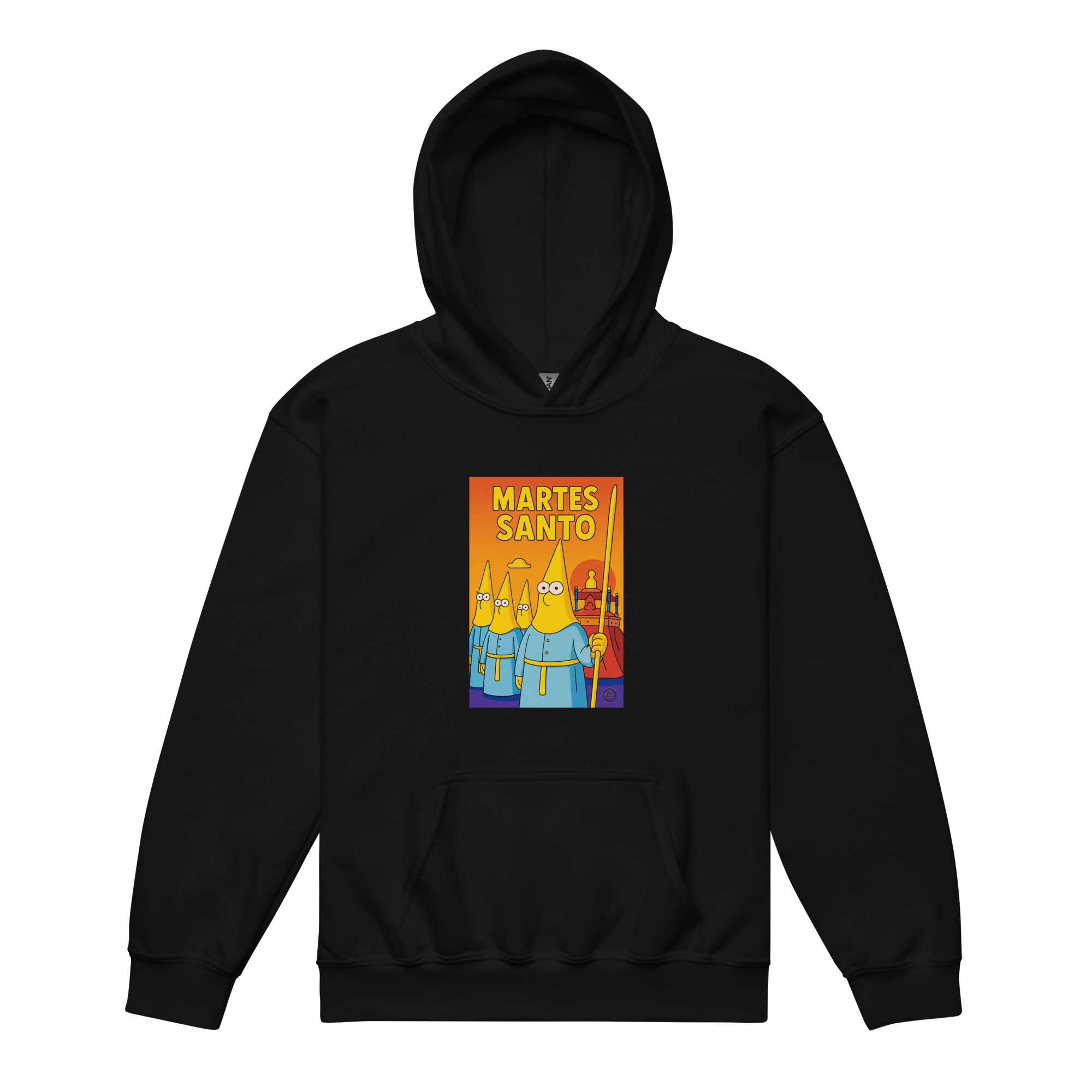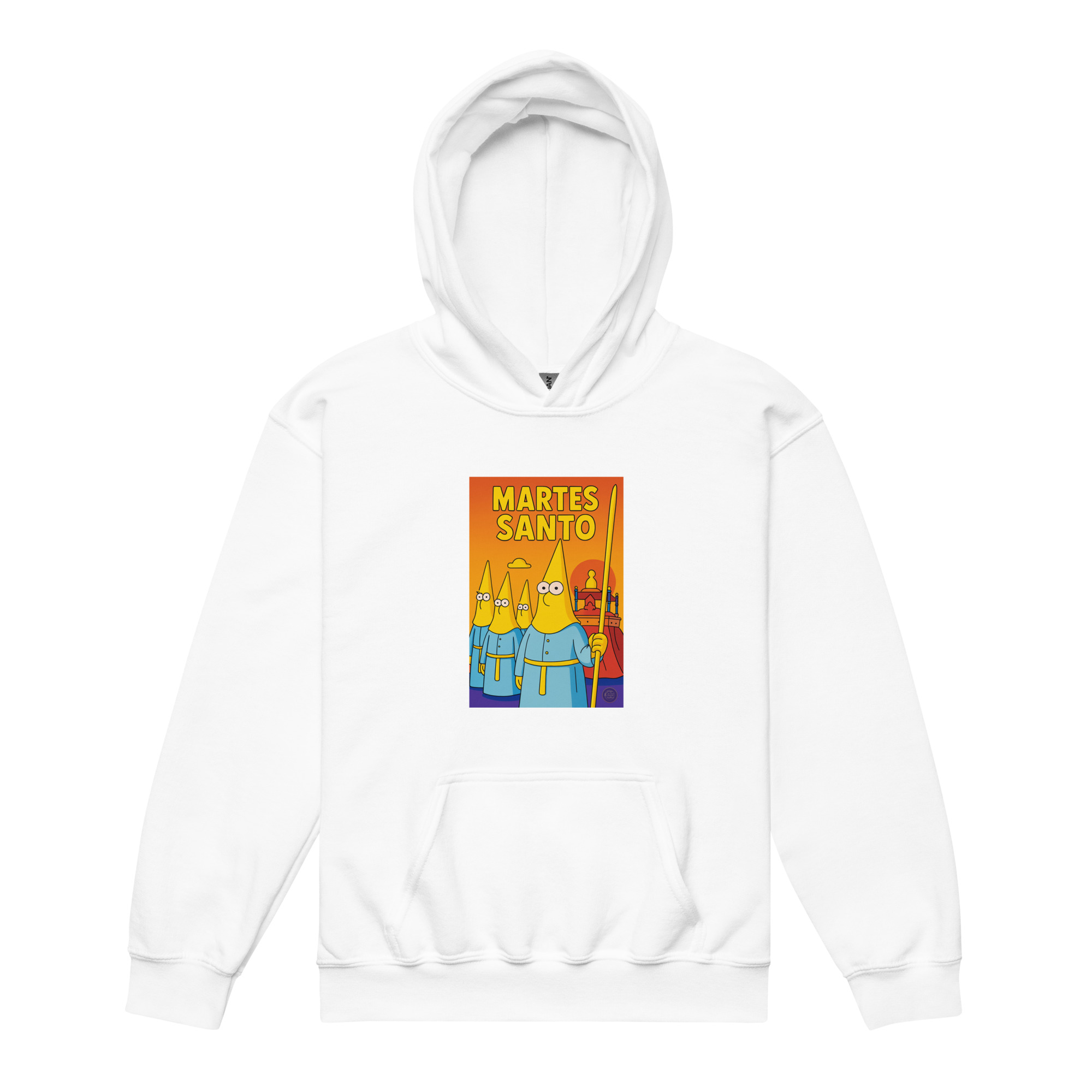 El Martes Santo también se vive con ilusión desde la infancia. Esta sudadera con capucha para niños destaca por su diseño alegre y colorido con la frase “Martes Santo”, que refleja la emoción y la devoción de los más pequeños durante la Semana Santa.